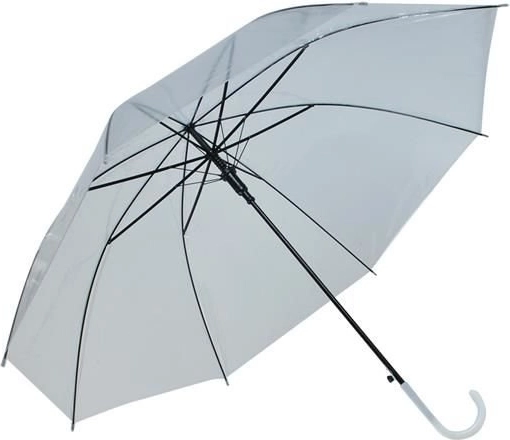 Štýlový priehľadný dáždnik s automatickým otváraním jedným tlačidlom. Ľahká konštrukcia, 8 ramien a zahnutá rukoväť pre pohodlné nosenie. Priehľadný plášť z PVC zlepšuje viditeľnosť a bezpečnosť v daždi – ideálny na každodenné používanie aj fotenie.