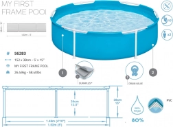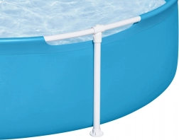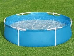 Bazén je vybavený stabilným, kovovým rámom, ktorý zabezpečuje primeranú pevnosť a trvácnosť celej konštrukcie. Steny sú vyrobené z trojvrstvového materiálu – spojenia odolného polyesteru a PVC, ktoré chráni pred poškodením.