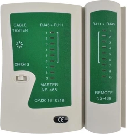 - TESTER KÁBLOV - určený na testovanie káblov, ako sú: UTP, FTP, STP a telefónne káble RJ45, RJ11.
