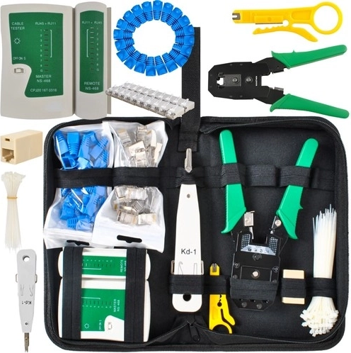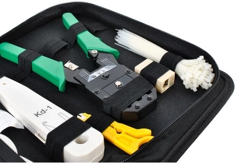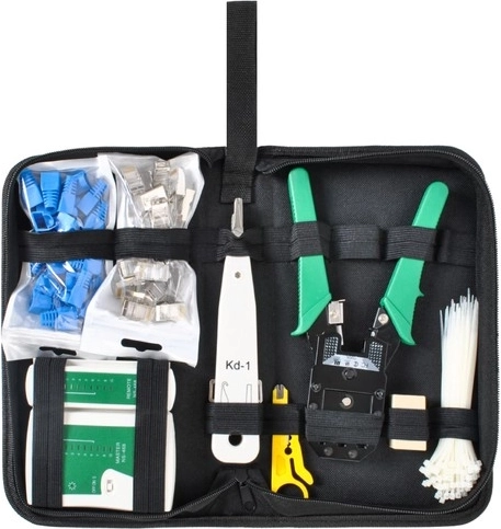 Sieťová súprava zabalená v praktickom kufríku vám umožní uložiť všetky potrebné nástroje na jednom mieste, vďaka čomu budete mať vo veciach poriadok, aby sa nestratila žiadna potrebná časť a aby sa prípadné poruchy dali ľahko opraviť. Výrobok sa odporúča najmä pre inštalatérov miestnych, mestských a rozsiahlych sietí, študentov IT, ale aj na domáce použitie