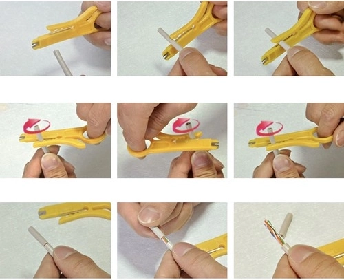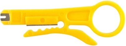 - TESTOVACÍ STROJ - určený pre modulárne typy zástrčiek: 8P8C/RJ45, 6P6C/RJ12, 6P4C/RJ11. Vyrobené z kalenej ocele. Prístroj je vybavený 2 nožmi - na orezávanie a na odizolovanie. Vymeniteľné nože umožňujú používať lisovací nástroj mnoho rokov.