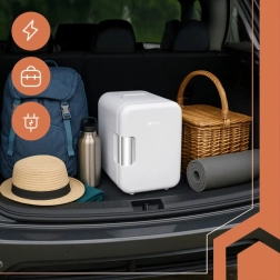 Táto prenosná chladnička s objemom 4 litre je skvelým spoločníkom na výlety, pikniky aj dlhé jazdy autom. Vďaka režimu chladí aj hreje udrží nápoje a občerstvenie osviežujúce v lete a príjemne teplé v zime. Do interiéru sa zmestia plechovky či fľaše do výšky 19 cm, vyberateľná polica a vrecko vo dverách uľahčujú organizáciu.