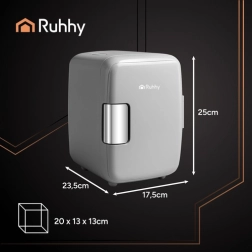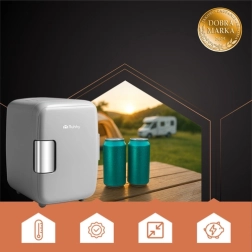 Kompaktná cestovná mini chladnička s objemom 4 l s funkciou chladenia aj ohrevu je ideálna na cesty, do auta, kancelárie aj na chatu. Ponúka napájanie 230 V aj 12 V, nízku hlučnosť a praktické vnútorné členenie s policou a vreckom vo dverách. Chladí až 18–22 °C pod teplotu okolia a v režime ohrevu udržiava 55–65 °C.
