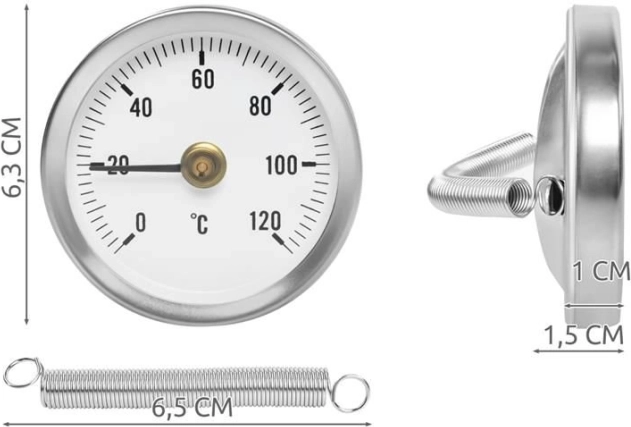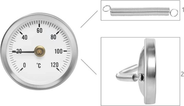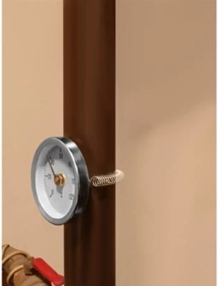 Montáž je jednoduchá pomocou priloženej pružiny, ktorá sa prispôsobí štandardným rozmerom potrubia. Bimetalická konštrukcia využíva rozdielneho rozširovania kovov k posunu ukazovateľa, čo garantuje presné a stabilné výsledky.
