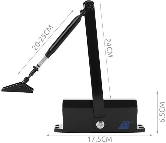 - Univerzálnosť – Vhodný pre pravé aj ľavé dvere. Jednoduché nastavenie rýchlosti pomocou otočenia regulačnej skrutky.