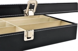 Vo vnútri nájdete 8 samostatných priehradiek s vyššími prepážkami, ktoré bránia nechcenému kontaktu a poškodeniu. Mäkká flanelová výstelka chráni pred oderkami, praktická tkanica drží veko v ideálnej polohe a kovový patent zabezpečuje bezpečné uzavretie pri presune.