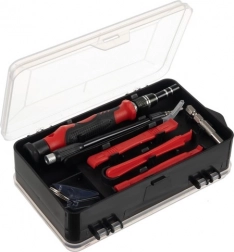 Táto profesionálna aj hobby sada precízneho náradia je navrhnutá na rýchle a bezpečné rozoberanie aj skladanie zariadení s malými a neštandardnými skrutkami. Každý diel má svoje miesto v kompaktnom, obojstranne otvárateľnom puzdre, čo zaisťuje poriadok, prehľadnosť a ľahkú prenosnosť. Vďaka magnetizéru pohodlne vytiahnete skrutky z ťažko dostupných miest.