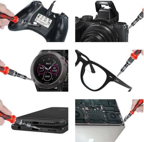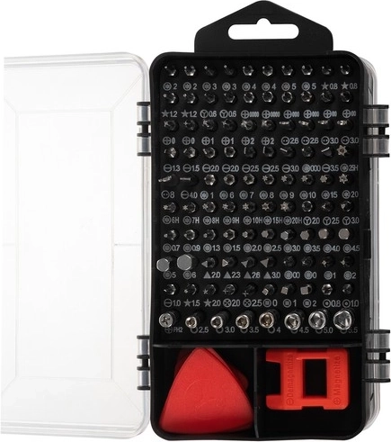 Sada obsahuje bity pre Torx/Torx s otvorom, Phillips, ploché, trojuholník, Pentalobe, Y a ďalšie – ideálne pre telefóny, notebooky, hodinky aj okuliare.