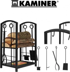 Elegantný stojan na drevo značky KAMINER kombinuje úložný priestor a kompletné krbové náradie 4v1 – kliešte, lopatku, metličku a kutáč. Robustná oceľová konštrukcia s matným čiernym povrchom je stabilná, odolná a skvele ladí s každým interiérom. Vďaka dvom policiam udržíte pri krbe poriadok a všetko potrebné na dosah.