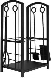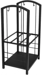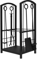Praktický stojan na krbové drevo s príslušenstvom vám umožní skladovať polená priamo pri krbe a mať pritom všetko potrebné po ruke. Dve úložné úrovne pojmú drevo aj drobné potreby, plná spodná police navyše bráni prepádzaniu triesok a nečistôt. Matné čierne prevedenie z nehrdzavejúcej ocele potláča viditeľnosť drobných škrabancov a nečistôt a pôsobí nadčasovo.
