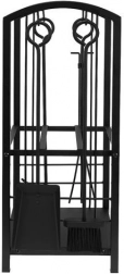 Kutáč, kliešte, lopatka a metlička pokryjú všetku obsluhu krbu – od rozhŕňania žeravých polien po rýchle upratanie popola. Náradie zavesíte na integrované háčiky.