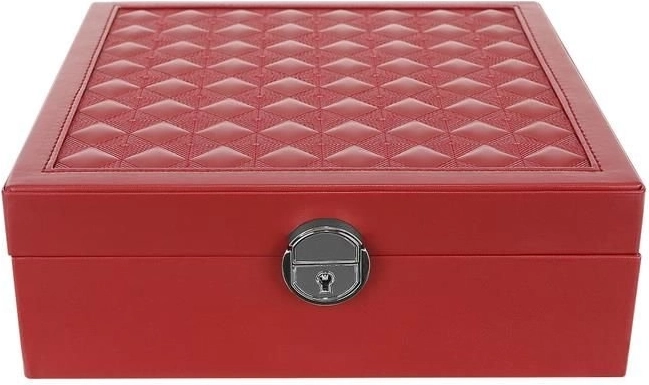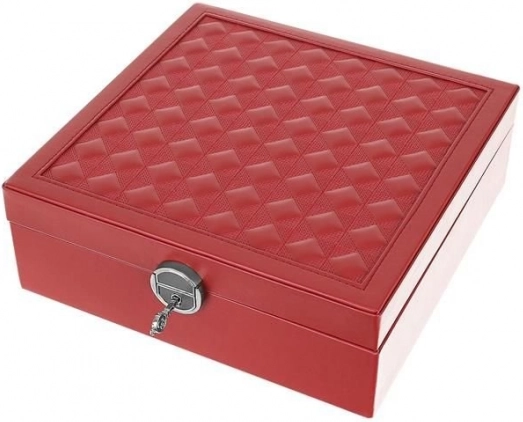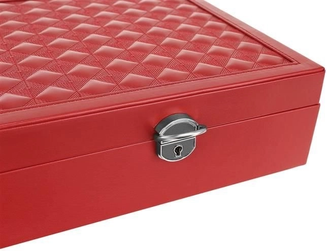 Uložte svoju bižutériu štýlovo a organizovane s touto elegantnou klenotnicou vo vínovej farbe. Vďaka viacúrovňovým priehradkám môžete jednoducho oddeliť prstene, náušnice, náramky a hodinky. Klenotnica je vyrobená z PU kože a MDF dosky, čo zaisťuje pevnosť i štýlový vzhľad.