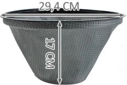 Popolový filter má priemer 29,4 cm a výšku 17 cm, takže sa perfektne hodí k vysávačom Kaminer. Umiestňuje sa priamo na okraj nádrže, vďaka čomu sa všetok popol zachytí na stenách materiálového filtra. Materiálový filter dokonale prilieha k okraju nádrže a počas prevádzky vysávača z neho neschádza. Po skončení vysávania stačí vybrať popolový filter a dôkladne ho vytriasť zo zachyteného obsahu alebo vyčistiť stlačeným vzduchom (osvedčí sa napr. funkcia dúchadla, ktorú majú niektoré modely vysávačov). Filter do krbových vysávačov je opakovane použiteľný – v prípade znečistenia ho ľahko vyperiete pod teplou tečúcou vodou a bude ako nový.