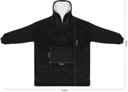 Užite si maximálne pohodlie a teplo s touto oversize mikinou–dekou v čiernej farbe. Mäkká baránková podšívka, praktické veľké vrecko a pohodlná kapucňa vás udržia v teple doma pri filme, na balkóne aj pri kempovaní. Unisex strih pre dospelých aj deti a prateľná údržba pre jednoduchú hygienu.