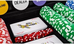 Vo výbave nájdete dva balíčky kariet, žetóny DEALER, SMALL BLIND a BIG BLIND – všetko pre plynulú domácu hru a turnajový formát.