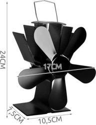 Krbový ventilátor s 5 lopatkami z hliníka a nehrdzavejúcej ocele zvyšuje účinnosť vykurovania tým, že rozvádza teplý vzduch od kachlí rovnomerne po miestnosti. Vďaka termoelektrickému modulu funguje úplne bez batérií a bez elektriny – čím vyššia je teplota platne, tým rýchlejšie sa vrtuľa otáča.