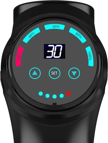 Táto masážna pištoľ má až 30 úrovní intenzity masáže. Ide o veľký rozsah,ktorý umožňuje individuálne prispôsobiť rýchlosť svalom, na ktoré sa má použiť. Intenzita práce sa mení pomocou citlivého dotykového panela, stačí sa ho jemne dotknúť.
