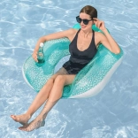 Nafukovacie ležadlo v tvare kresla kombinuje pohodlie a praktickosť pre relax pri vode. Ergonomické operadlo podopiera chrbát, zatiaľ čo držiak na pohár či fľašu udrží váš obľúbený nápoj vždy po ruke. Štýlový tyrkysovo‑biely mozaikový dizajn skvele vynikne na každej vodnej hladine.