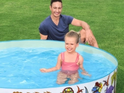 Detský bazénik Bestway s farebnými dinosauřími potlačami je skvelou voľbou na horúce dni. Vďaka samorozpínacej konštrukcii stačí bazénik jednoducho rozložiť a napustiť vodou – počas chvíľky je pripravený na vodné radovánky. Odolný materiál PVC zaisťuje dlhú životnosť a bezstarostné používanie.