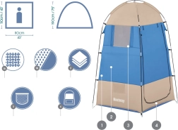 Táto prenosná šatňa od značky Bestway ponúka dostatočný priestor pre prezliekanie, čo je ideálne pre pláže, jazerá či kempy, kde potrebujete súkromie. Šatňa je vybavená zipsom pre ľahký vstup a ventiláciu, a obsahuje tri nepresvietenie okná pre efektívne vetranie. Vo vnútri nájdete tiež praktické vrecko, do ktorého môžete uložiť mobilný telefón, kľúče alebo peniaze.