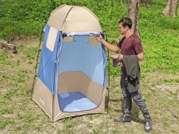 Ide o nepostrádateľný doplnok pre všetkých, ktorí trávia leto v prírode a nechcú čakať v radách na verejné šatne. Šatňa zahŕňa podlahu, ktorú možno demontovať pre jednoduché čistenie. Jednoducho zložiteľná a rozložiteľná, či už pri skladovaní alebo preprave v špeciálnom puzdre.