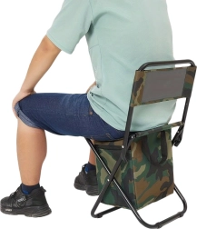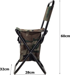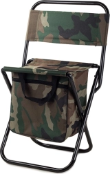 Ľahká a skladná turistická stolička v maskovacom štýle MORO s praktickým operadlom chrbta a integrovanou taškou pod sedadlom. Ponúka pohodlné sedenie pri rybárčení, kempovaní aj na festivale, stabilný oceľový rám a ľahké prenášanie vďaka rukoväti a popruhom.
