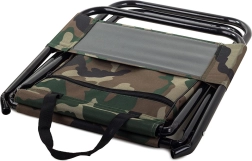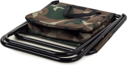 Vďaka pevnej oceľovej konštrukcii a odolnej tkanine v maskovacom vzore je stolička pripravená na časté používanie v prírode. Nízka hmotnosť a kompaktné rozmery po zložení uľahčujú transport na ryby, do kempu, do lesa aj na pláž.