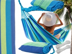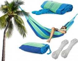 Široká ležiaca plocha poskytne maximálne pohodlie pre dve osoby, zatiaľ čo pevné laná a kvalitné šitie zaistia stabilitu a bezpečnosť. Po zložení zaberie minimum miesta a vďaka obalu ju ľahko vezmete na piknik, kempovanie alebo dovolenku.