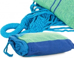 Zmes bavlny a polyesteru je priedušná, príjemná a trvácna. Husto pletené závesné laná zabezpečujú stabilitu a bezpečné používanie až do 200 kg.