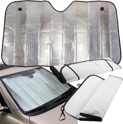 Udržte interiér vozidla príjemne chladný a chráňte palubnú dosku pred UV žiarením. Táto univerzálna slnečná clona na čelné sklo ponúka účinnú tepelnú ochranu, reflexný povrch z oboch strán, rýchlu montáž s prísavkami a skladací dizajn s gumičkami pre jednoduché uloženie.