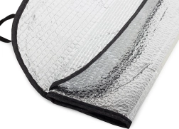 Reflexná clona na čelné sklo s bublinkovou izoláciou výrazne znižuje prehrievanie interiéru a bráni vyblednutiu čalúnenia aj poškodeniu elektroniky slnkom. Vďaka obojstranne odrážajúcemu povrchu funguje spoľahlivo v lete proti horúčave a v zime pomáha zamedziť namŕzaniu skla.