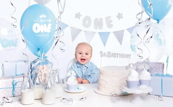 Táto univerzálna sada na prvé narodeniny vytvorí zladenú atmosféru bez zdĺhavého plánovania. Modré a strieborné prvky pôsobia čisto a slávnostne, takže výzdoba vynikne na fotkách aj počas samotnej oslavy. Všetko je prakticky zabalené v krabičke, stačí rozbaliť a začať zdobiť.