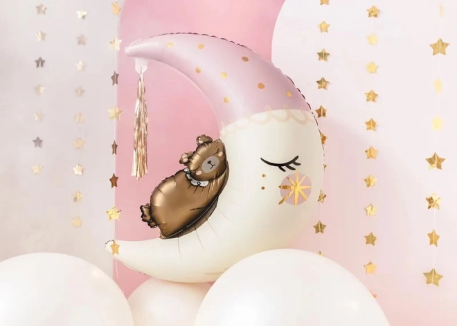 Hľadáte pôvabnú dekoráciu na detskú oslavu, privítanie bábätka alebo narodeniny? Tento fóliový balón s medvedíkom na mesiaci je ideálnou voľbou. Vďaka možnosti nafúknutia héliom vytvorí krásny plávajúci efekt, zatiaľ čo pri nafúknutí vzduchom skvele poslúži ako súčasť výzdoby či fotokútika.