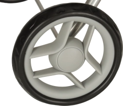 Vďaka gumovým kolieskam, ktoré nepoškriabu podlahu, je kočík vhodný pre vonkajšie i domáce použitie.