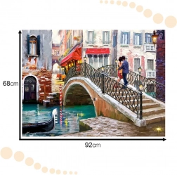 Puzzle zobrazuje umeleckú ilustráciu romantického mosta v Benátkach s párom na moste. Tento motív dodáva obrazu čaro a tajomstvo.