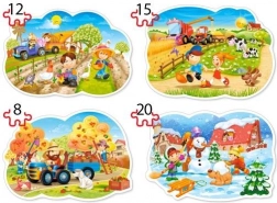 Sada obsahuje štyri samostatné skladačky s 8, 12, 15 a 20 dielikmi – ideálne pre rast schopností dieťaťa a radosť z každého úspechu.