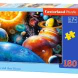 Táto stredne náročná sada puzzle je skvelá pre deti, ktoré hľadajú zábavnú výzvu. Téma Planets and their Moons nadchne všetkých milovníkov vesmíru a vďaka sýtym farbám a presným výsekom sa dieliky ľahko skladajú.