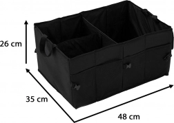 Maximalizujte priestor a poriadok vo svojom batožinovom priestore. Organizér s nastaviteľnou šírkou poskytne miesto pre všetko, čo v aute potrebujete – od fliaš s kvapalinami až po papierové utierky. Keď ho práve nepotrebujete, počas chvíľky ho zložíte do plochého tvaru a uložíte.