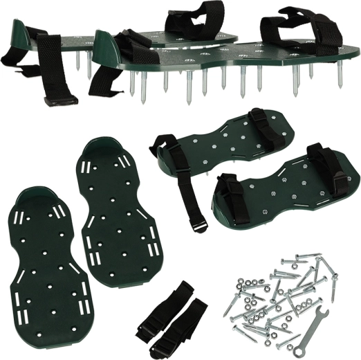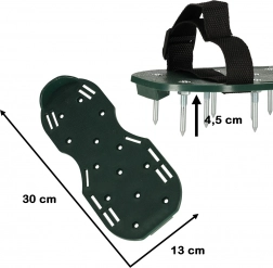 Provzdušňovacie topánky na trávnik spevnia a oživia váš trávnik počas bežnej chôdze po záhrade. Vďaka kovovým hrotom prenikajú do pôdy, zlepšujú prísun vzduchu, vody a živín ku koreňom a podporujú hustejší a zdravší rast trávy. Univerzálna veľkosť s nastaviteľnými páskami zaistí isté uchytenie na akúkoľvek obuv.