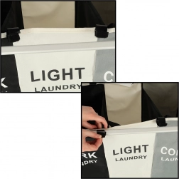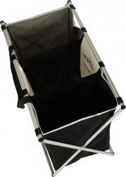 Stabilný kovový stojan a odolná tkanina Oxford 600D zaručujú dlhú životnosť. Kôš možno rýchlo zložiť a preniesť pomocou integrovaných úchytov, spojenie častí je jednoduché vďaka pevným suchým zipsom.