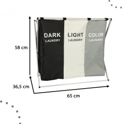 Už žiadne zdĺhavé preberanie bielizne pred praním. Tento priestranný organizér ponúka 3 samostatné vaky s jasným označením pre jednoduchú orientáciu. Celkový objem 135 litrov (3× 45 l) pojme bielizeň celej rodiny, zatiaľ čo kompaktné rozmery 65 × 36,5 × 58 cm sa zmestia aj do menších priestorov.