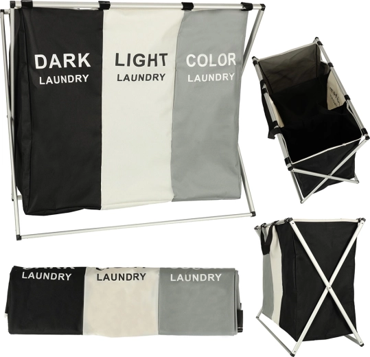 Praktický trojkomorový kôš na bielizeň s celkovou kapacitou 135 l uľahčí každodenné triedenie na tmavé, svetlé a farebné. Vďaka pevnej kovovej konštrukcii, odolnej textílii Oxford 600D a skladaciemu rámu šetrí miesto a udrží vašu kúpeľňu či šatník v perfektnom poriadku.
