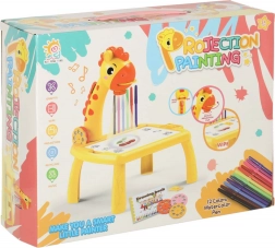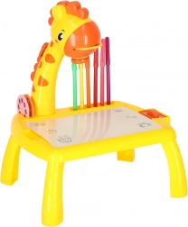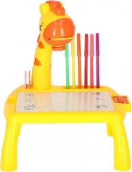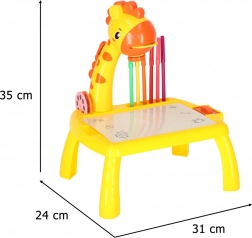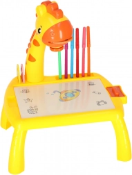 Objavte zábavný spôsob, ako deti naučiť kresliť! Žltý žirafí projektor premieta obrázky na papier, aby ich deti mohli obkresliť. Súčasťou sú farebné fixky, tri vymeniteľné kotúče s motívmi a stieracia podložka. Skvelá pomôcka na rozvoj kreativity, jemnej motoriky a presnosti – ideálna pre deti od 3 rokov.