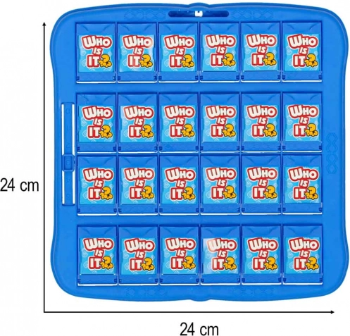 V balení nájdete 24 rôznych postáv s výraznými aj podobnými črtami, takže žiadna partia nebude rovnaká. Pevné plastové tabuľky s odolnými výklopnými doštičkami zabezpečujú plynulú a hmatovo príjemnú hru. Ideálne od 4 rokov pre 2 hráčov.