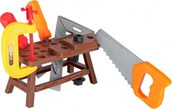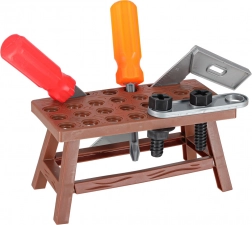 Stabilný plastový stolík s dierovanou doskou, svorkou a držiakmi na nástroje vytvorí zábavné pracovné prostredie pre každého malého majstra.