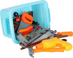 Kompletný detský pracovný stolík s náradím pre malých majstrov obsahuje až 48 dielov na nápaditú hru a učenie. Vďaka pestrým farbám a bezpečnému plastovému vyhotoveniu si deti precvičia jemnú motoriku a koordináciu. Súčasťou sú skrutky a matice, plastová vŕtačka/skrutkovač, kladivo, pílka, kliešte aj perforované diely na stavanie. Praktický úložný box udrží všetko pokope a umožní ľahké prenášanie.