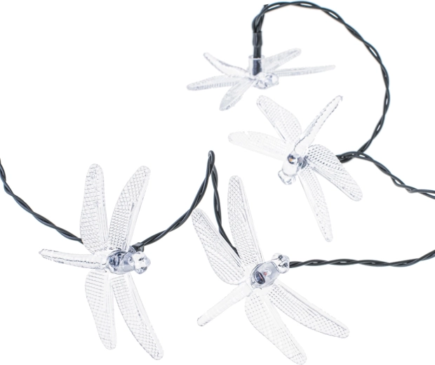 Ozdobte balkón, terasu aj záhradu rozprávkovým svetlom. Solárny reťaz s vážkami ponúka 30 farebných LED, dĺžku 6,5 m, 8 svetelných režimov a odolnosť IP65. Bez káblov do zásuvky, úsporná solárna prevádzka a až 7 hodín svietenia po zotmení.