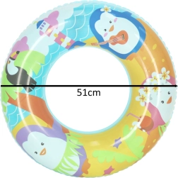 Ľahký a ľahko prenosný nafukovací kruh s priemerom 51 cm je ideálny na prvé vodné hry. Vďaka atraktívnej grafike s tučniakmi motivuje deti k pohybu vo vode a zároveň napomáha ich istote pri učení plávania.