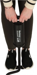 Elastická hadica s tromi rôznymi koncovkami umožňuje prispôsobenie rôznym ventilom výrobkov nafukovacích zariadení. Mechanizmus pumpovania vzduchu do oboch smerov – zdola nahor aj zhora dolu – poskytuje rýchle a efektívne nafúknutie. Základňa pumpy s nožnými úchytmi je navrhnutá pre optimálnu stabilitu pri používaní.