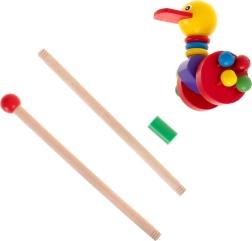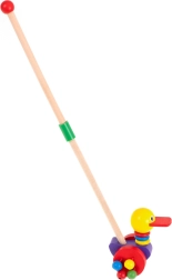 Táto farebná drevená kačička je ideálnou spoločníčkou na prechádzky. Je navrhnutá tak, aby podporovala detskú motoriku a pohyb. Vďaka jednoducho ovládateľnej drevenej tyči môže byť kačička vedená alebo sa s ňou deti môžu hrať samostatne.
